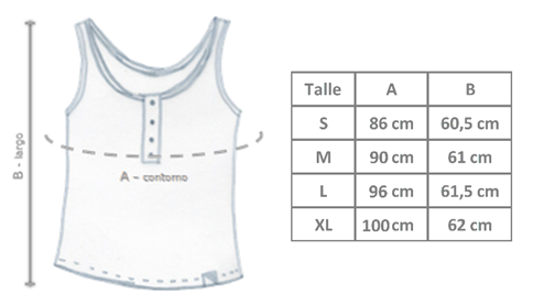 Acá te mostramos la tabla de medidas de la prenda (lo ideal es compararla con algo similar que tengas en uso)