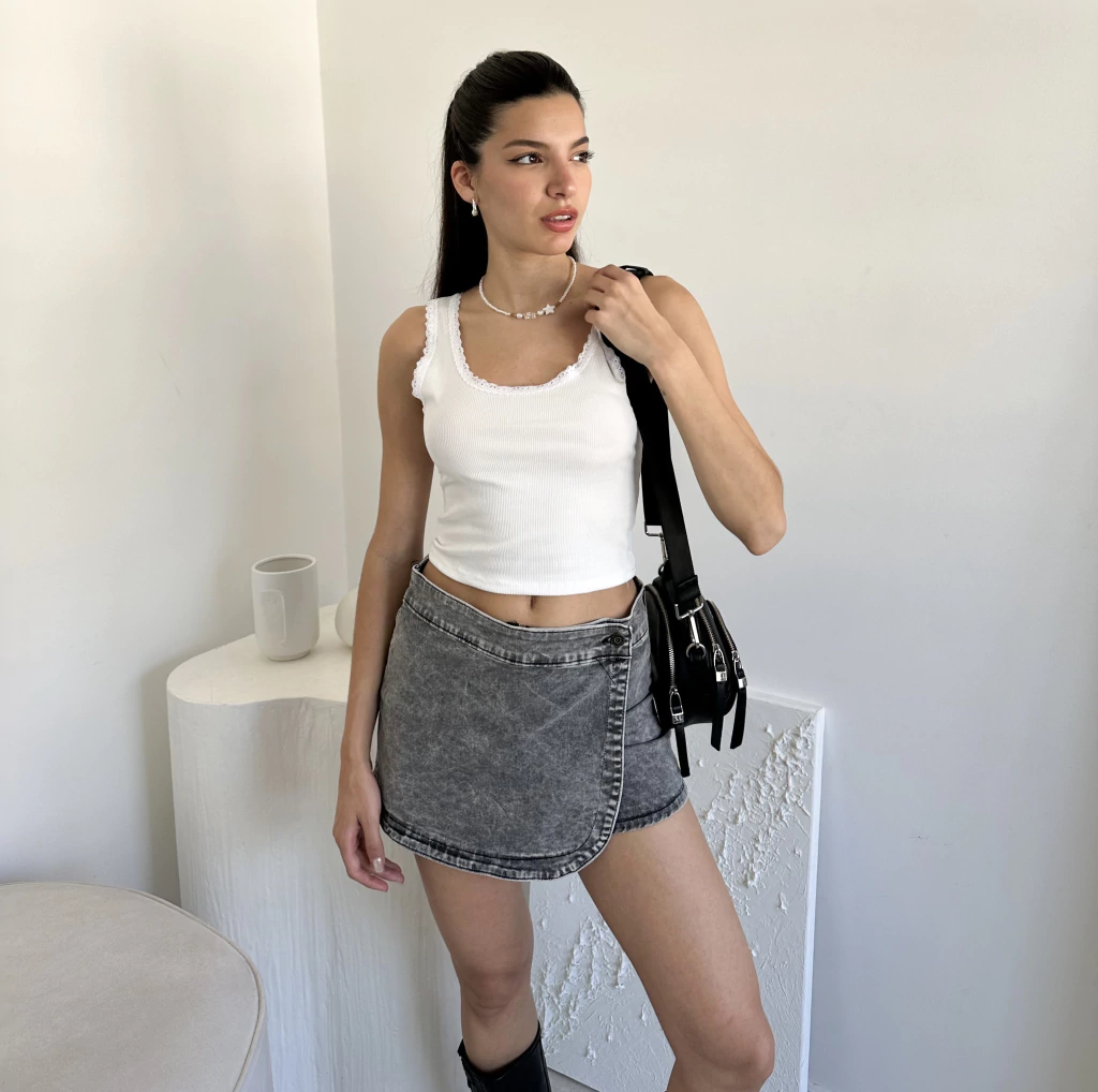 Musculosa de morley con puntilla !!Medidas:Pecho 35 cm, Cintura 33 cm , Largo 41 cm