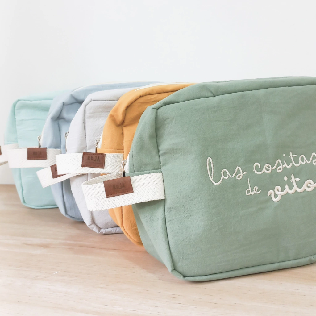 ACLARACION: Los necesers de color terracota, canela y verde malva se bordan con hilo natural, el resto de los necesers se borda con hilo negro (tal como se muestran en las imagenes) En caso de querer el bordado en otro color, dejarlo aclarado en Notas.