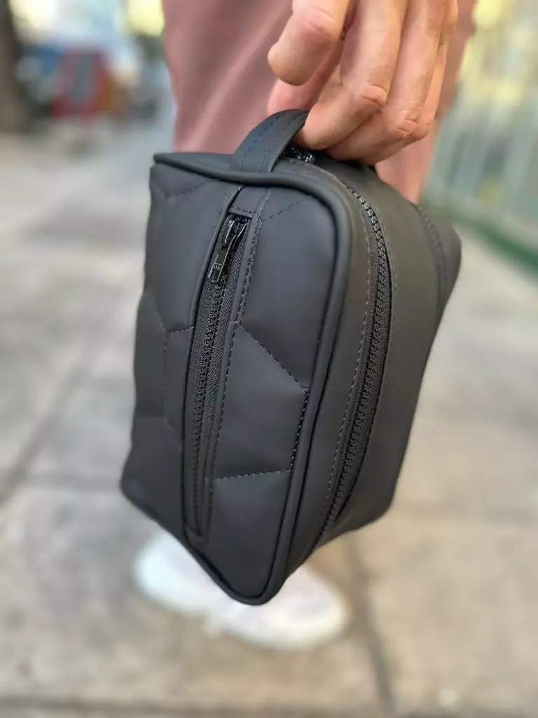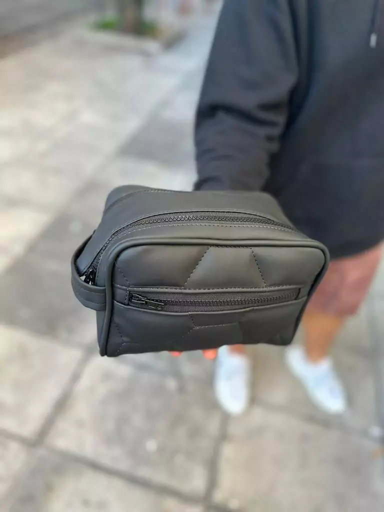NECESER TRIPLE PELOTA ENGOMADO NEGRO100% Eco-cuero negro engomado bordado con gajos de pelota.Forrado confriselina negra.Cierres y deslizadoresmarca YKK negros.Incluyebolsillo internopara tus llaves y tarjetas, y unbolsillo externocon cierre.Manija de agarre, ideal para esos días en el gym o cualquier aventura.Medidas:Largo: 21cm, Ancho: 11cm, Alto: 14cm.No olvides que tenemos más modelos y colores disponibles. ¡No te lo pierdas!DEPRIMERABOLSOS ⚽️