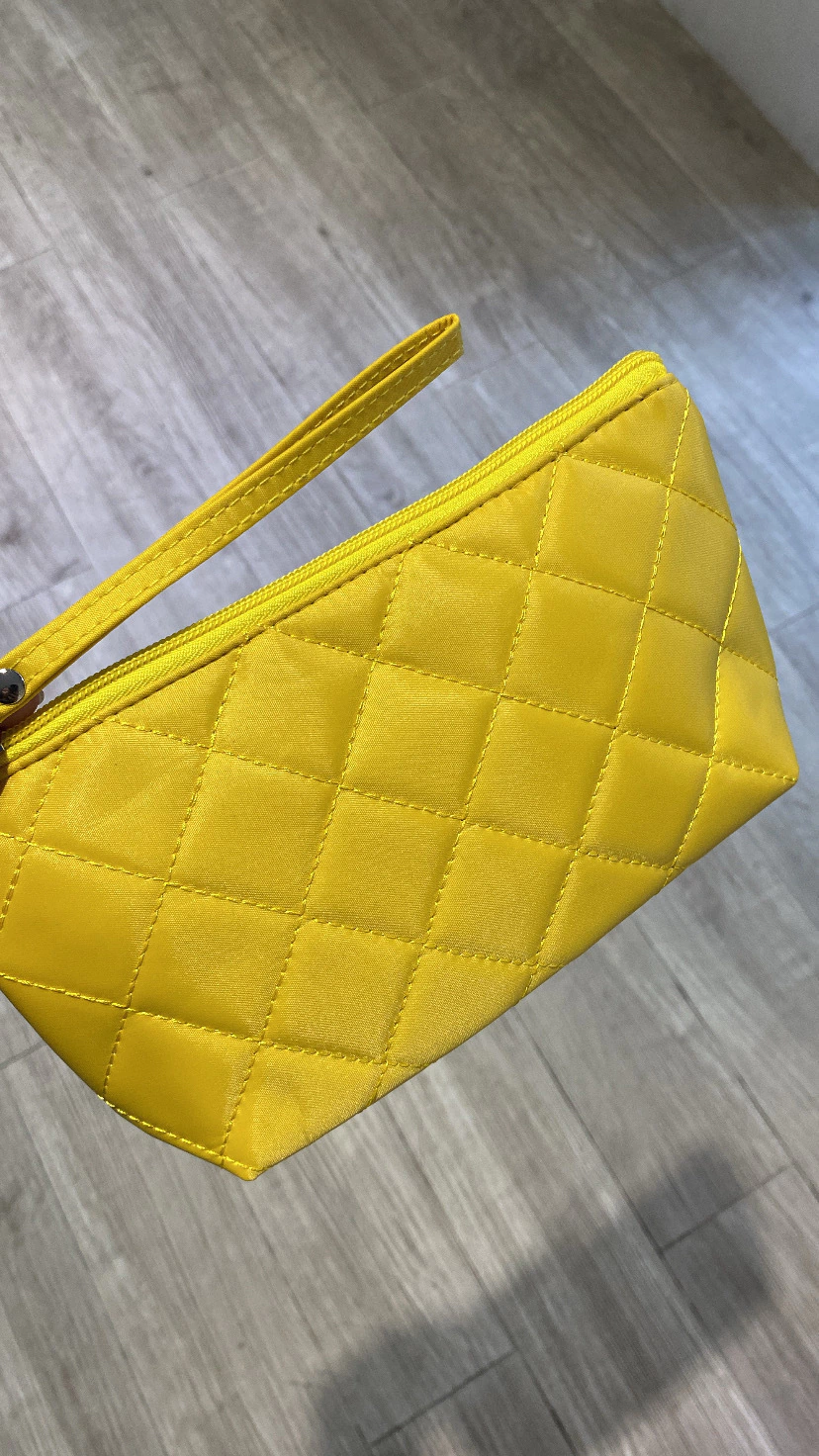 Necessaire de matelasse.Medidas: 23cms de largo por 12cms de alto.Cierre a tono. Interior forrado en tela lisa e impermeable. Manija.