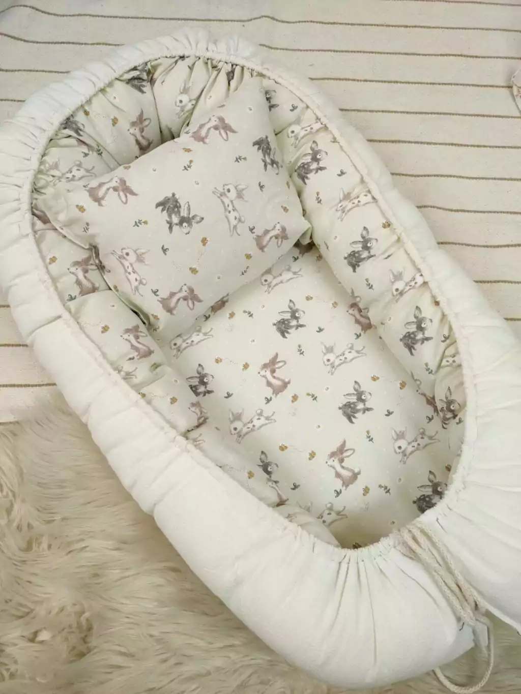 El nido de contención con base sirve para los primeros meses de vida. Es idel para mantener al bebé seguro mientras duerme en la cama de los papás, brindandole tambien un espacio cómodo y seguro.