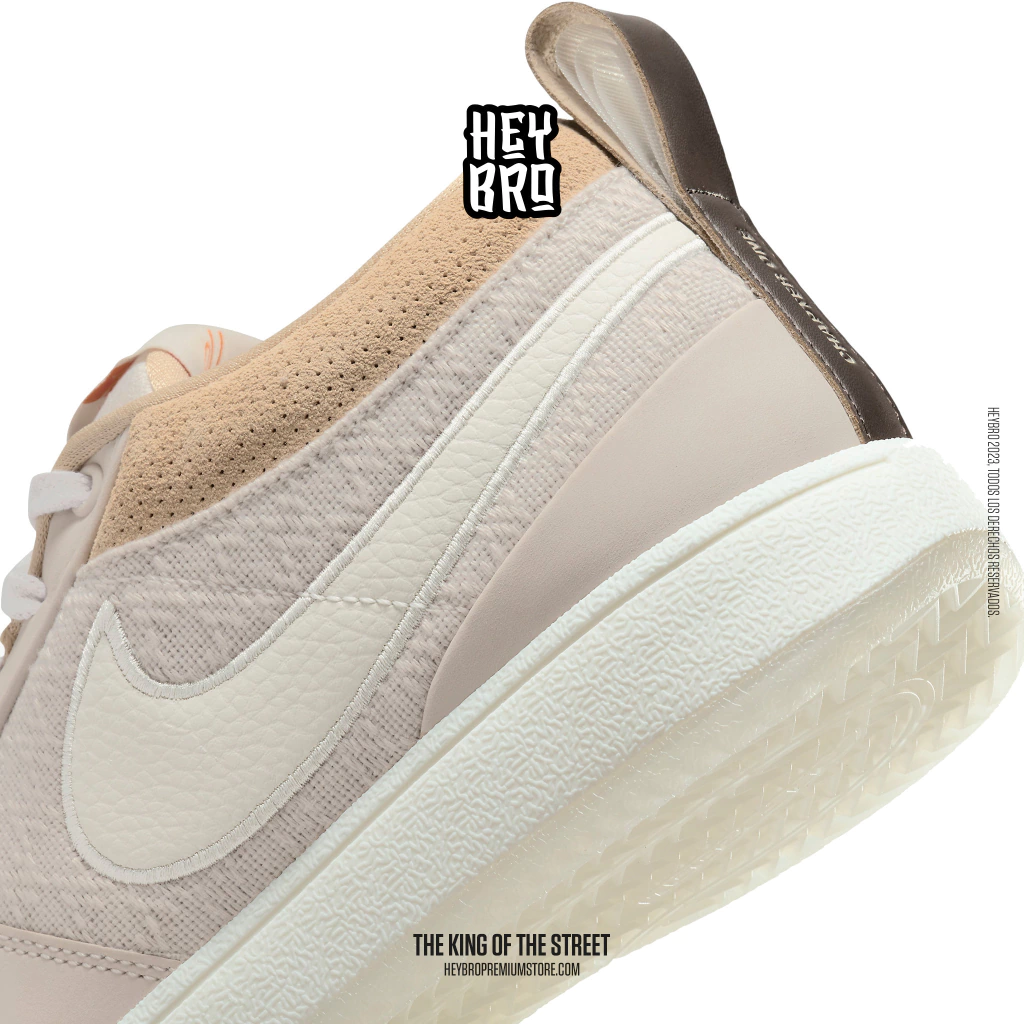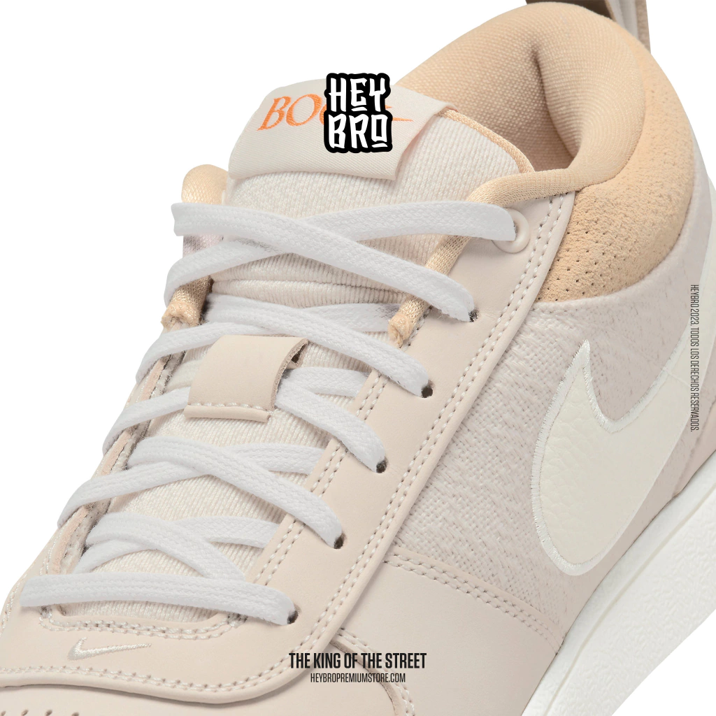 El exterior es puro Book, con una parte superior inspirada en la ropa de trabajo para agregar durabilidad. El cuello de gamuza y el cuero auténtico en el antepié proporcionan más refuerzo y brindan una sensación cómoda desde el primer momento. La presilla de agarre en el talón está inspirada en el lomo de un libro, con números que hacen referencia a capítulos de una historia en curso.