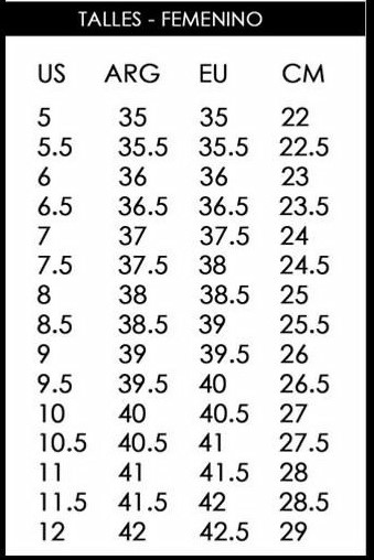 Equivalencia de talles: