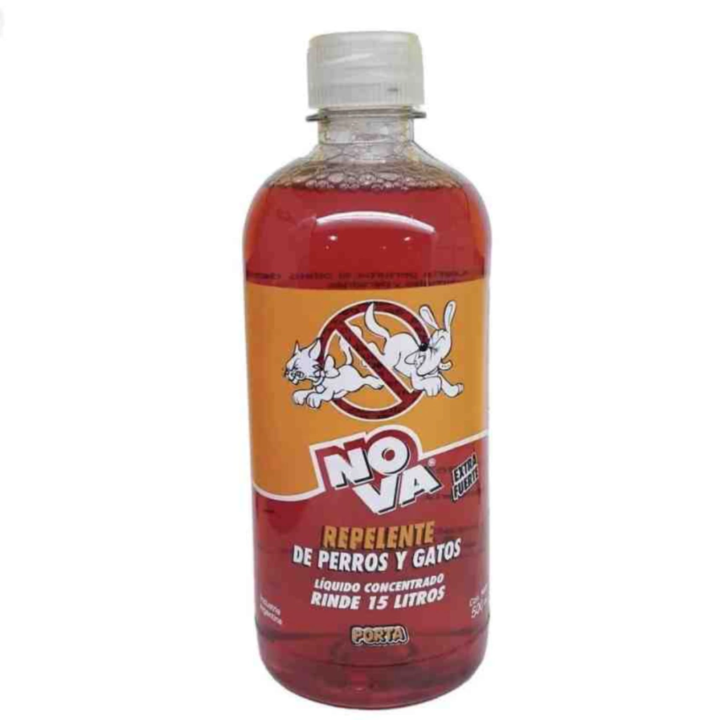 No Va Liquido Concentrado Repelente Porta 500ml El repelente NO VA liquido extra fuerte perturba el olfato de los perros y gatos ahuyentándolos. Es inocuo para los animales y personas. MODO DE USO: AGITAR BIEN ANTES DE USAR. En superficies amplias (patios, veredas, terrazas, etc): Para ahuyentar gatos: Diluir 2 o 3 cucharadas soperas por cada litro de agua. Para ahuyentar perros: Diluir 3 a 4 cucharadas soperas por cada litro de agua. Aplicar con balde o regadera. En plantas y jardines: Embeber pequeños trozos de tela, algodón o madera con el producto sin diluir y colocarlos sobre la tierra a unos centímetros de la los tallos. En objetos y superficies pequeñas: Aplicar directamente con rociador el producto sin diluir. Repetir todos los dias hasta lograr cambiar el habito indeseado de los animales.