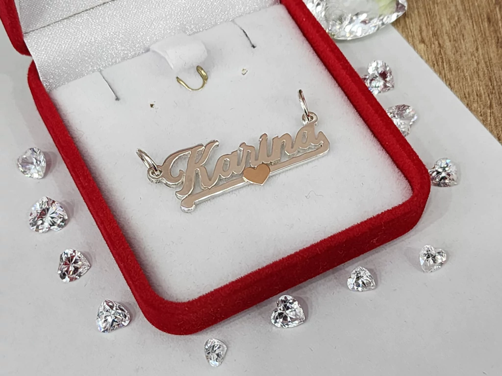 Modelo: Nombre Calado en plata 925 con detalle corazon en oro.