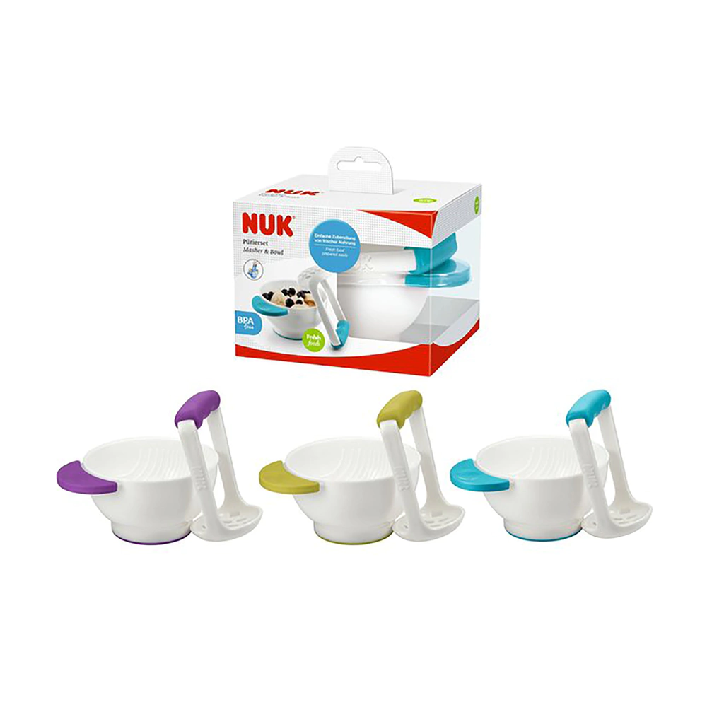 CONSULTAR POR COLORES DISPONIBLESNUK SET PARA PUREPara preparar fácilmente pequeñas porciones de puré.Pisador y bowl con base y asas antideslizantes.Surcos interiores para facilitar la tarea.Ideal también para preparar el puré fuera de casa.