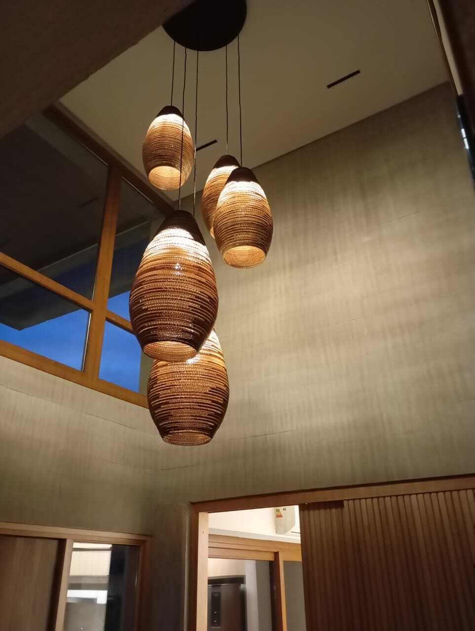 Diseño artesanal y sustentable. La lámpara colgante Oboe está fabricada a mano con cartón corrugado reciclado, aportando calidez, textura y compromiso ambiental a tus espacios.