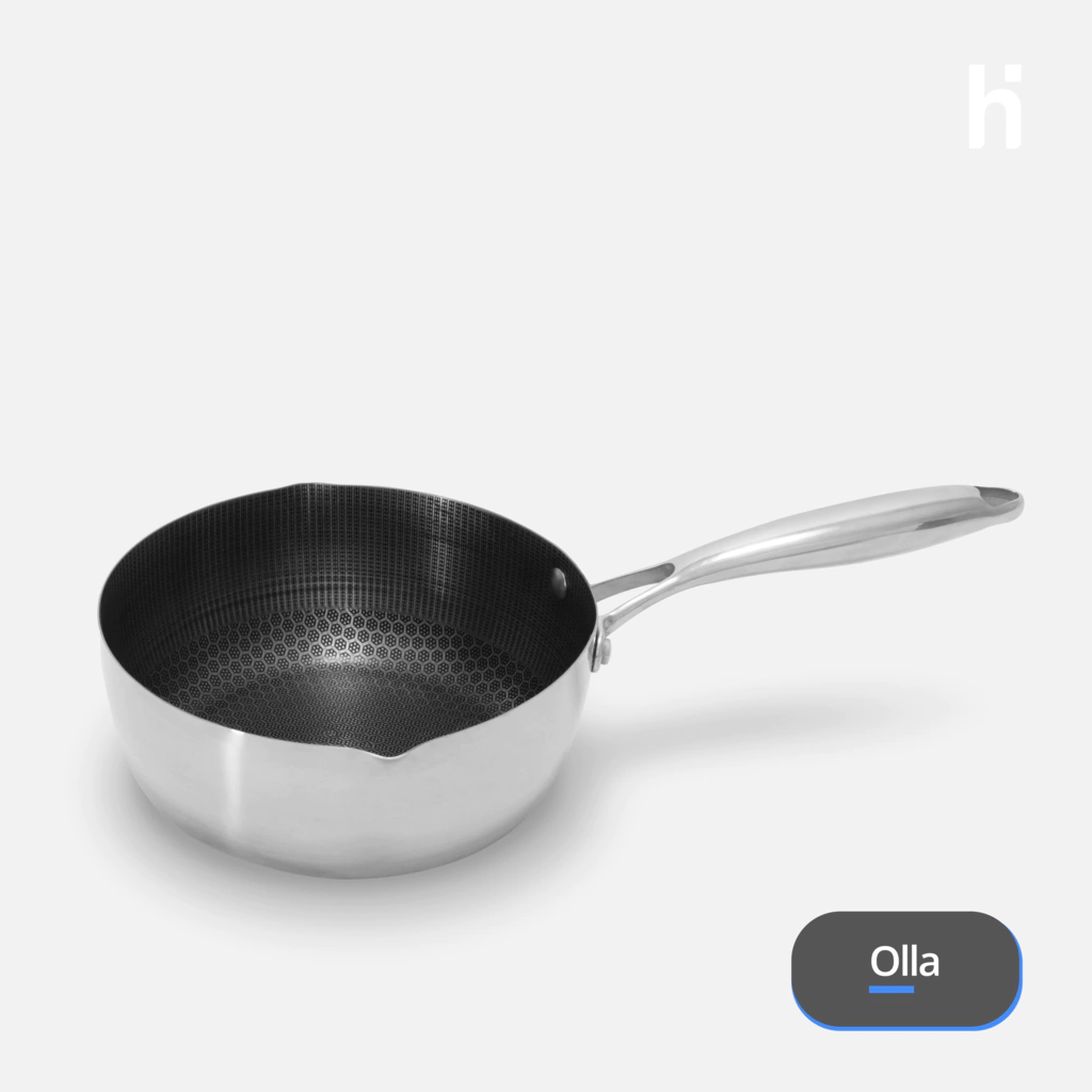 Olla de acero inoxidable Homeinox. Su tamaño compacto de 20 cm la hace ideal para porciones familiares y preparaciones del día a día