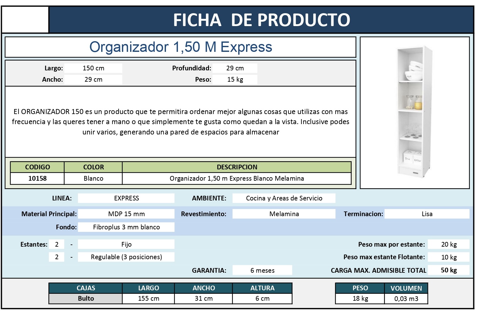 Organizador 1,50 mts. 150 x 29 x 29 cm