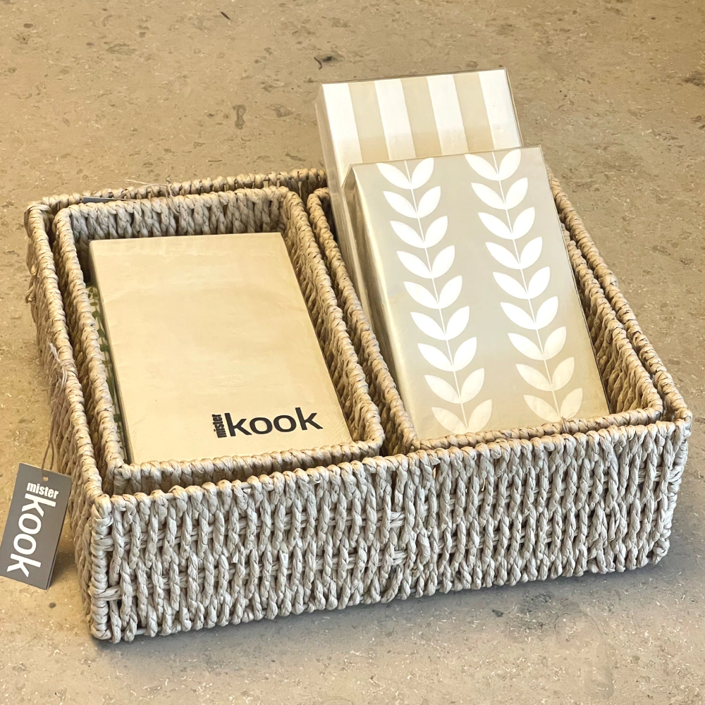 Medidas:GR:26 x 23 x H10 cm.CH:21 x 12 cm H9 cm para servilletas rectangularesSET/3:-2 unidades de 21 x 12 cm H9 cm para servilletas rectangulares-1 unidad de26 x 23 x H10 cm.