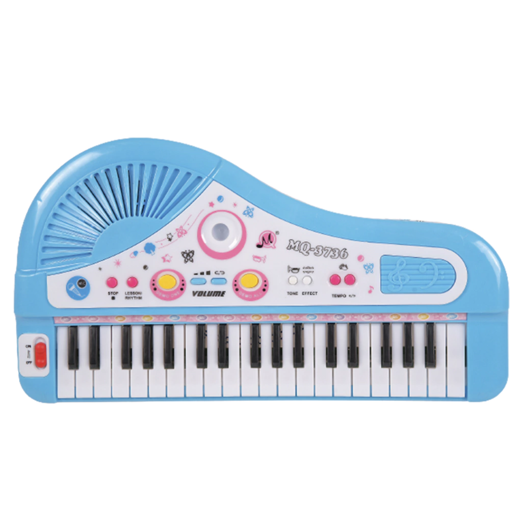 ¡Descubrí el emocionante mundo de la música con el increíble teclado musical USB modelo MQ3736! Diseñado especialmente para los más pequeños, este teclado de 37 teclas es el compañero perfecto para inspirar la creatividad y desarrollar habilidades musicales desde una temprana edad.ACLARACIÓN: Las teclas negras replican el mismo sonido que la tecla blanca siguiente.Con sus 24 cautivadoras canciones de demostración, tu hijo podrá sumergirse en un mundo de melodías y ritmos, estimulando su imaginación y pasión por la música. Además, la función de grabación incorporada le permitirá capturar sus creaciones musicales y compartirlas con la familia y amigos.El teclado MQ3736 Plus viene con 3 tonos diferentes, brindando una amplia variedad de sonidos para explorar y experimentar. A través de sus 8 ritmos preprogramados, tu hijo podrá crear sus propias composiciones y sentirse como un verdadero músico.La función de micrófono incluido agrega un toque especial al teclado, permitiendo que tu pequeño artista cante y se divierta con el karaoke. ¡La combinación perfecta para una experiencia musical completa!El teclado MQ3736 Plus cuenta con un diseño intuitivo que facilita el cambio de tonos y ritmos con solo presionar un botón.Con sus medidas compactas de 36x19.8x5.5 cm, este teclado es fácil de transportar y almacenar. Ya sea en casa o en movimiento, la música nunca estará fuera del alcance de tu pequeño talento.Características37 teclas.24 canciones de demostración.3 tonos.8 ritmos.2 opciones de tempo y 2 niveles de volumen.Efecto de sonido incorporado.Micrófono para karaoke.Diseño compacto y ligero para mayor comodidad.Alimentación mediante cable USB o 4 pilas AA (no incluidas).