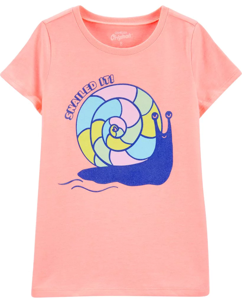 Esta cómoda remera de jersey con un divertido gráfico de caracol es justo lo que necesita. Telas & Cuidado: • 100% Jersey de Algodón • Remera: 60% Algodón, 40% Jersey de algodón • Importado • Lave en lavarropa •