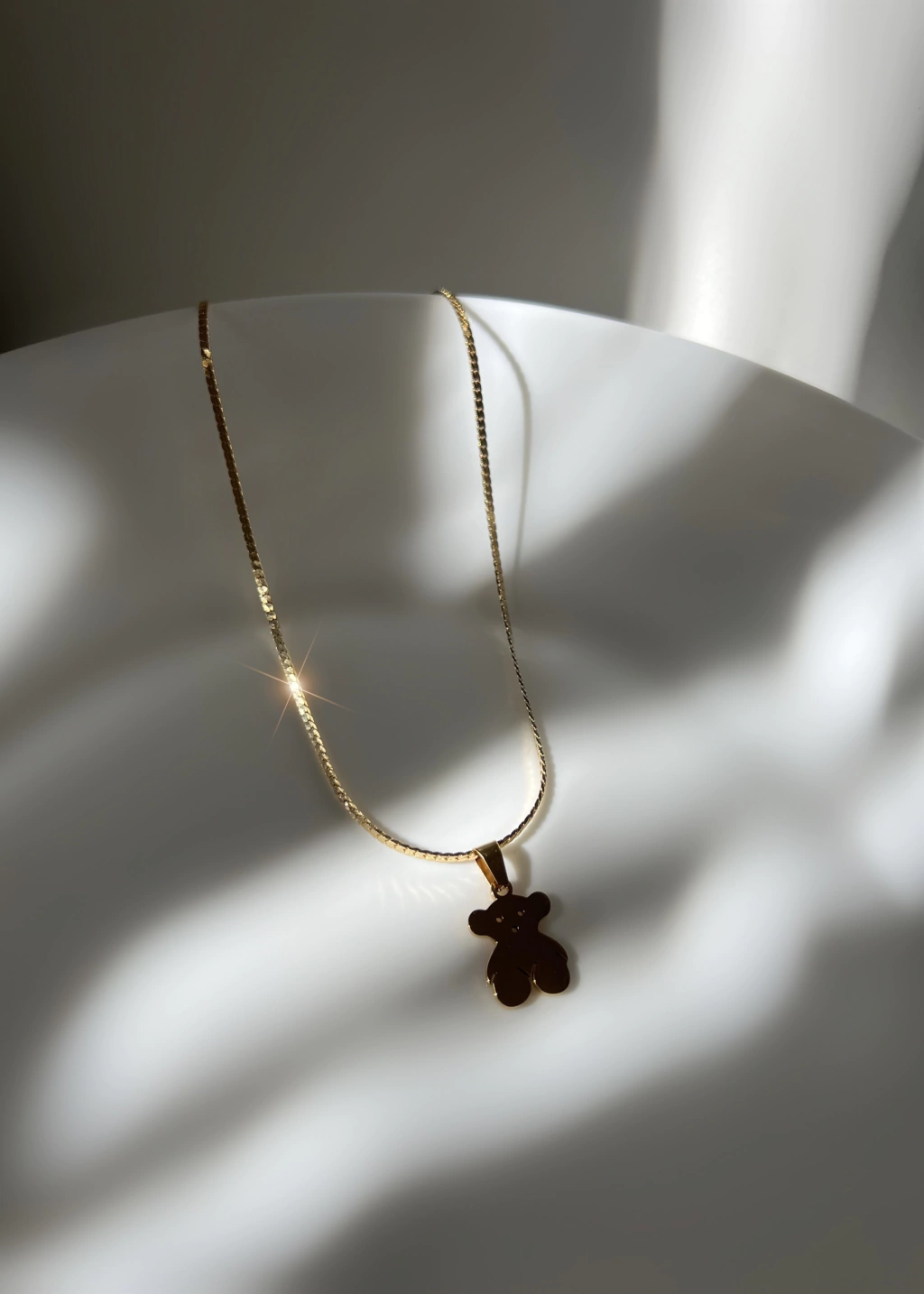 Cadena y dije de acero quirúrgico dorado y bañado en oro.