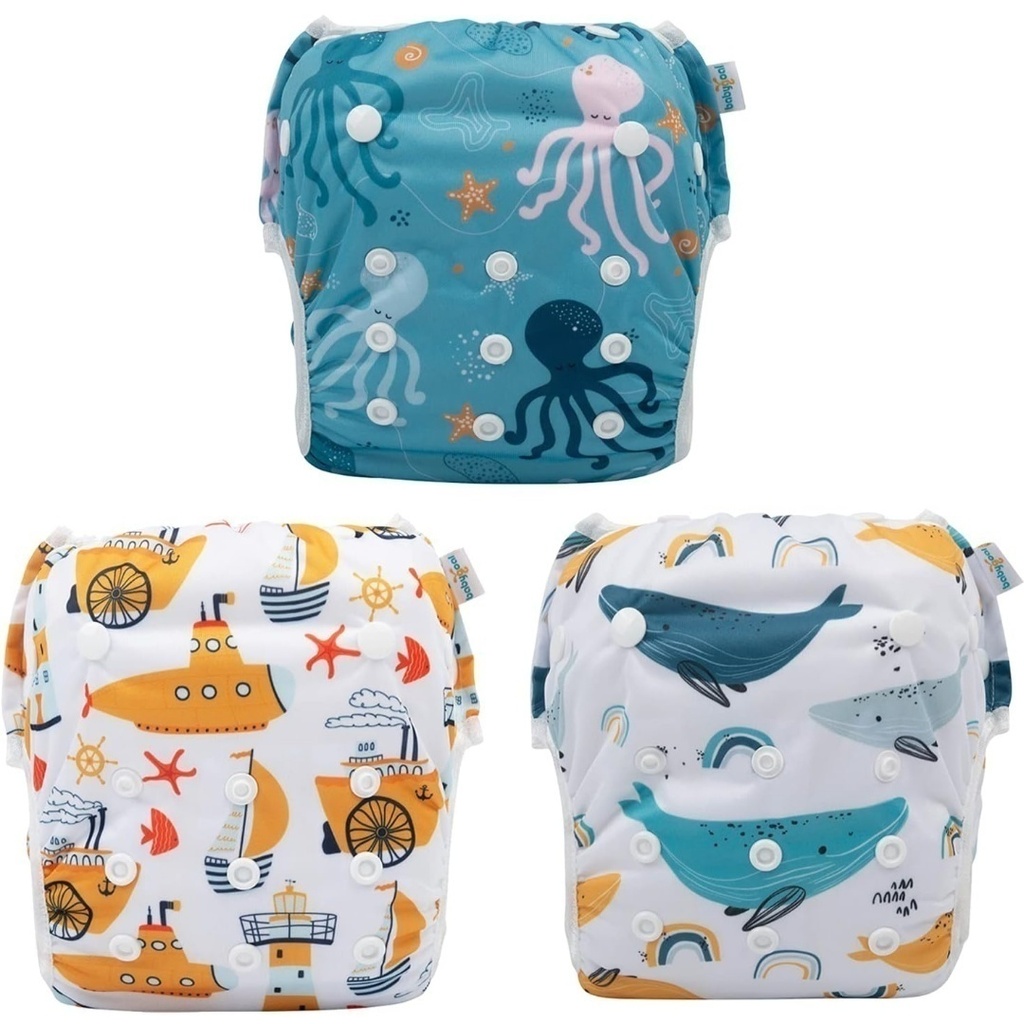 Los pañales de agua reutilizables, se pueden utilizar en el agua sin pañal, ya que retiene materia solida, y esta preparados para eso.