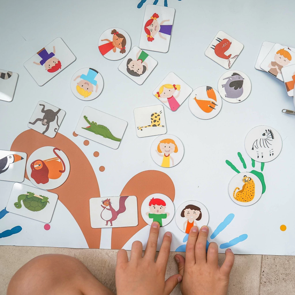 ¿Los niños quieren más? ¡Perfecto! Te presentamos el “Pack Animales y Emociones”. Un conjunto de 24 piezas diferentes que se reparten en 14 fichas de animales de la selva y 10 fichas de emociones.