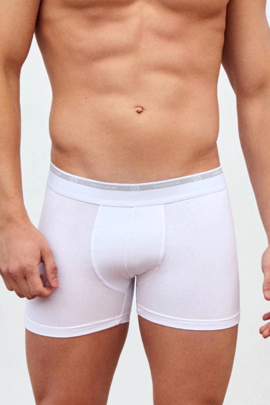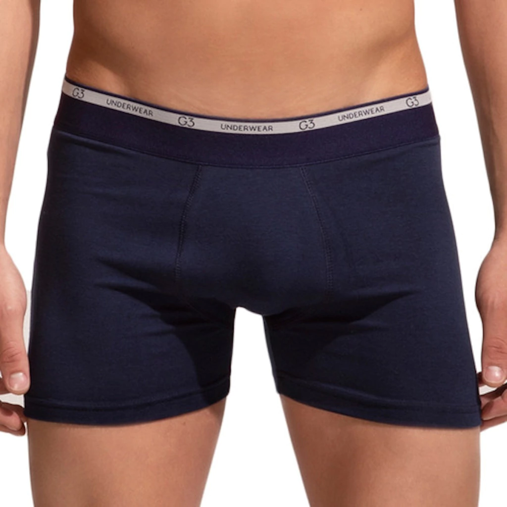 PACK BOXER ALGODON G3 HOMBREPack por 3 unidades de BOXER marca G3 UNDERWEARModelo PIERNA MEDIA, corte clasico, con elastico exterior tejido a la vista, es de tela 94% algodon suave elastizada con LYCRA para mayor duración del boxer. Se amolda al cuerpo.ESPECIFICACIONES TÉCNICAS- Composición: 94% Algodón y 6% Lycra.- Talles: 3XL al 5XL- Colores: Surtidos- Art:3200-e - 3290-e