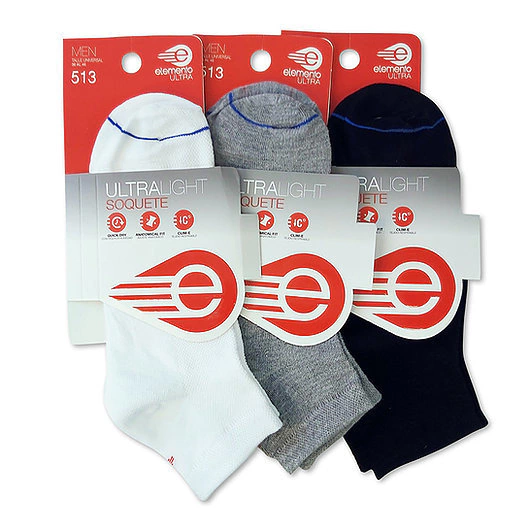 PACK MEDIAS ELEMENTO DEPORTIVAS HOMBREPack por 3 unidades de Medias DEPORTIVAS marca ELEMENTOModelo sin toalla, ULTRA DEPORTIVA, ultra liviana con mesh respirable y banda de compresión. Fabricado con tela de algodon y poliester, elastizada. Ideal para todo momentoESPECIFICACIONES- Compuesta: Algodon y Poliester- Talle: Unico- Colores: Surtidos- Art.513