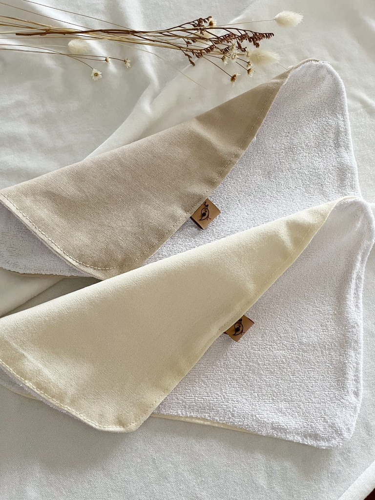 Pack de babitas confeccionadas en tusor y toalla para mejor absorciónmedidas 30 cm x 20 cmcolores : Arena y Natural