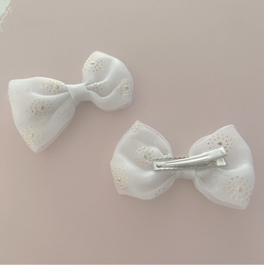 Pack de dos hebillas de moño con aplique. Con brocheTamaño únicoIdeal para bautismos y cumpleaños.