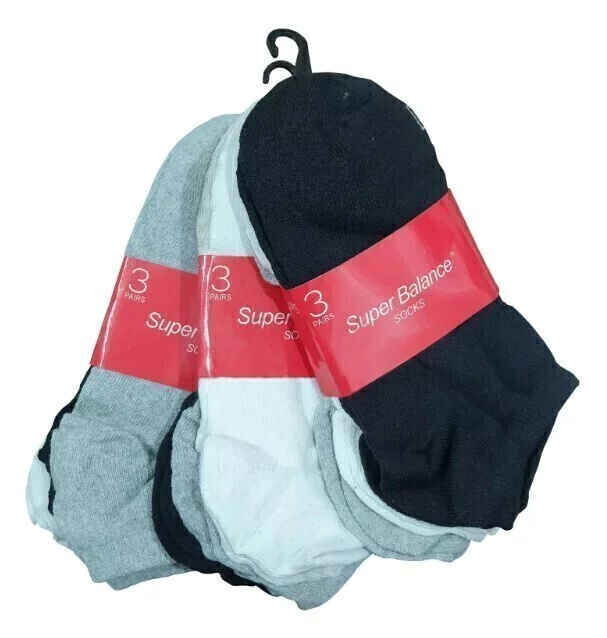 - 12 Pares de medias soquetes -Color: Surtidos (Blanco, Negro y Gris) -Material: (80% Algodón) (10% Elastano) (10% Nylon) -Tipo de medias: Soquete -Talle 35 al 40 y 41 a 46