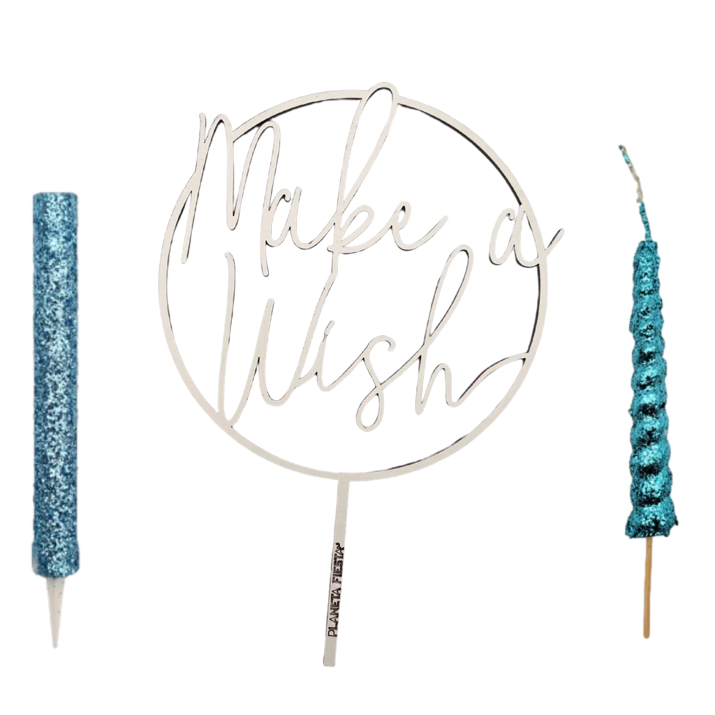 ¡Pack ideal para decorar tu torta!Contiene:- 1 bengala glitter de 14,5 cm- 1 topper de 19 cm de alto y 12,5 cm de ancho aproximado- 1 velón glitter de 13 cm