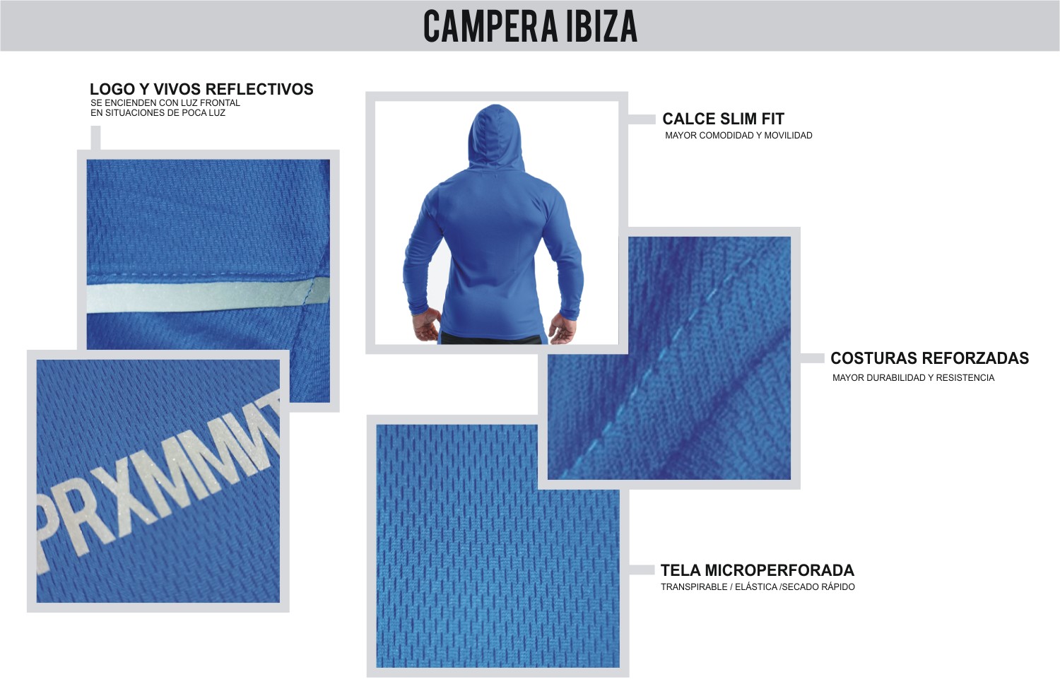 Detalles reflectantes: el logo y los hombros reaccionan con luz frontal, aportando visibilidad en espacios oscuros.