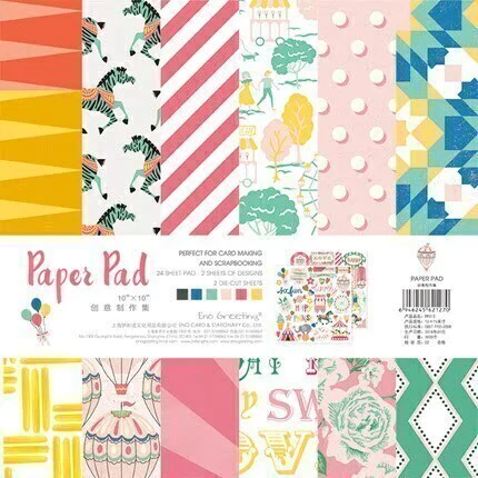 Cada Pack, trae 24 papeles decorados (12 diseños que se repiten dos veces cada uno) + 2 hojas de troquelados en la misma paleta y estilo.