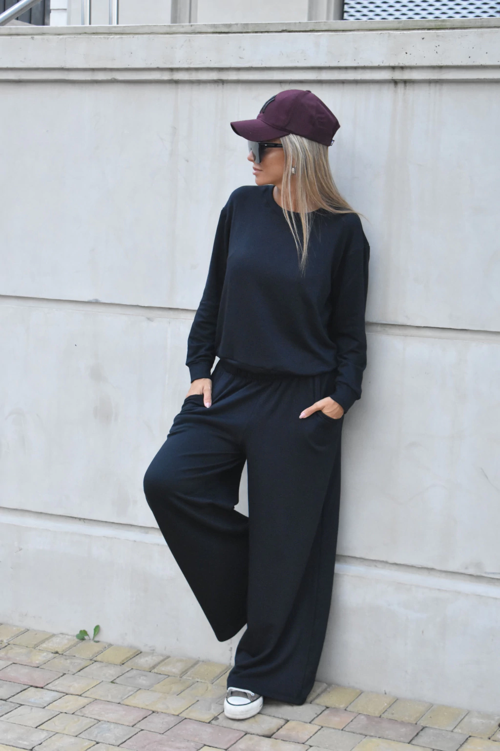 Pantalón Palazzo con terminación oxford con bolsillos a los costados. Súper ancho y cómodo!