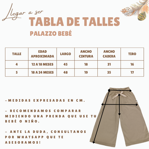 👖 Talles para bebés y niñas: Ofrecemos estos palazzos en tallas 4 y 5 para bebés, así como en talles para niñas.
