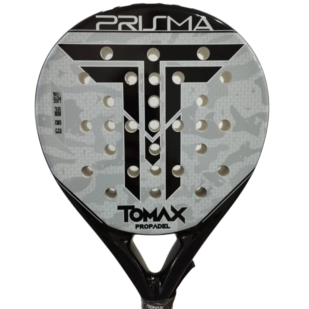 PALETA DE PADEL TOMAX PRISMA + GRIP + PROTECTOR + ENVÍO GRATIS- Componentes: Fibra de vidrio- Nucleo: Ultra Soft- Formato: LAGRIMA- Balance: medio- Perfil: 38 mm. constantes- Otros: Excelente equilibrio entre potencia y control.