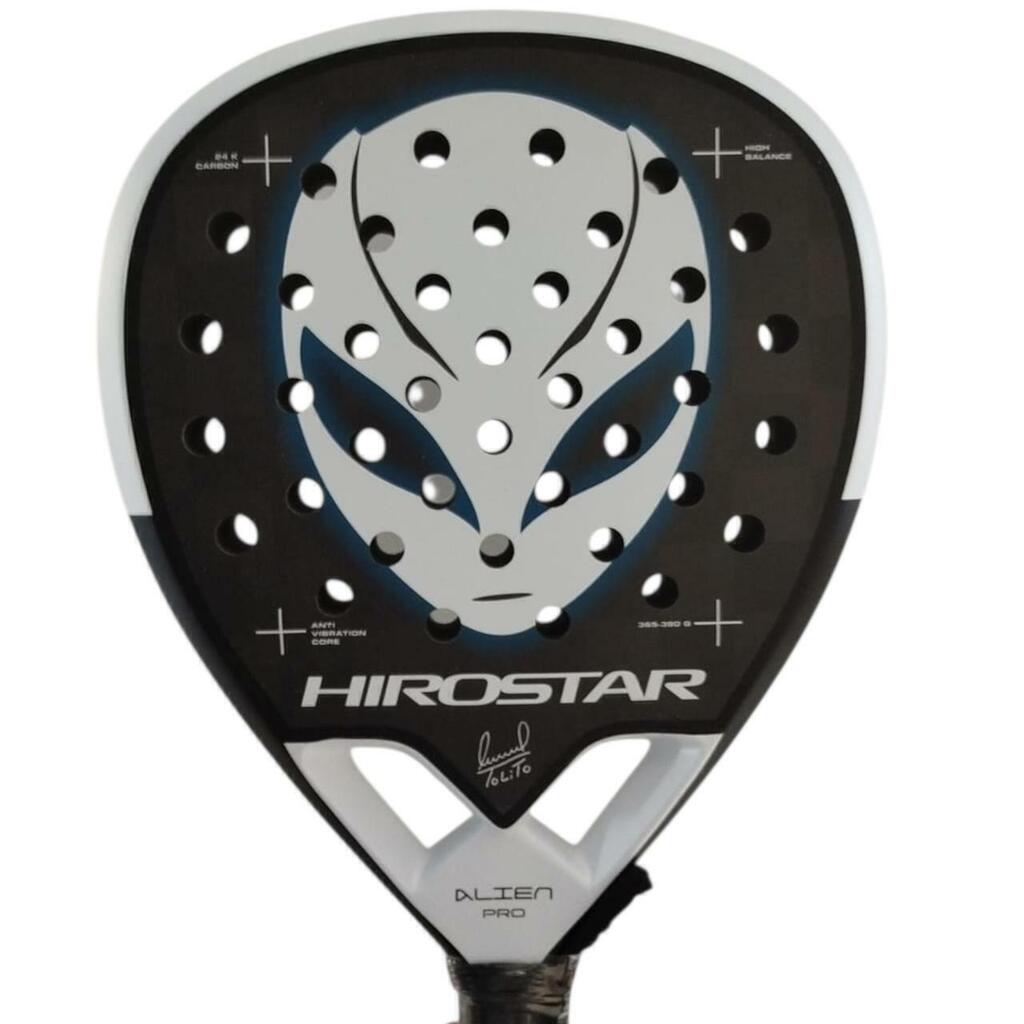 HIROSTAR ALIEN BY TOLITO AGURRE 24kEl carbono 24k con el núcleo Black Xtreme EVA la convierte en una pala robusta y con una potencia increíble.- Componentes: Fibra de Carbono 24K- Nucleo: Eva Black- Formato: Diamante- Balance: Alto- Textura: Rugosa- Perfil: 38 mm. constantes- Otros: Ideal para jugadores de todos los niveles que buscan mejorar su rendimiento en la cancha