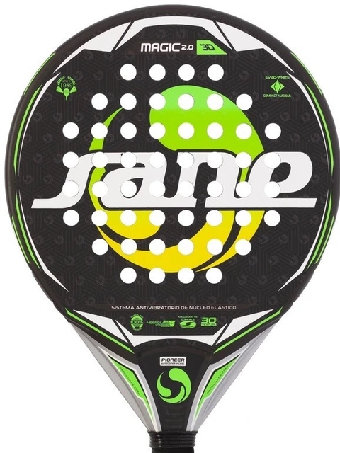 PALETA DE PADEL IMPORTADA SANE MAGIC 2.0 3DESPECIFICACIONES TECNICAS:- Componentes: Fibra de vidrio, tubular carbono- Nucleo: Black Eva- Formato: Redonda- Balance: Medio- Perfil: 38 mm. Constantes- Textura 3D
