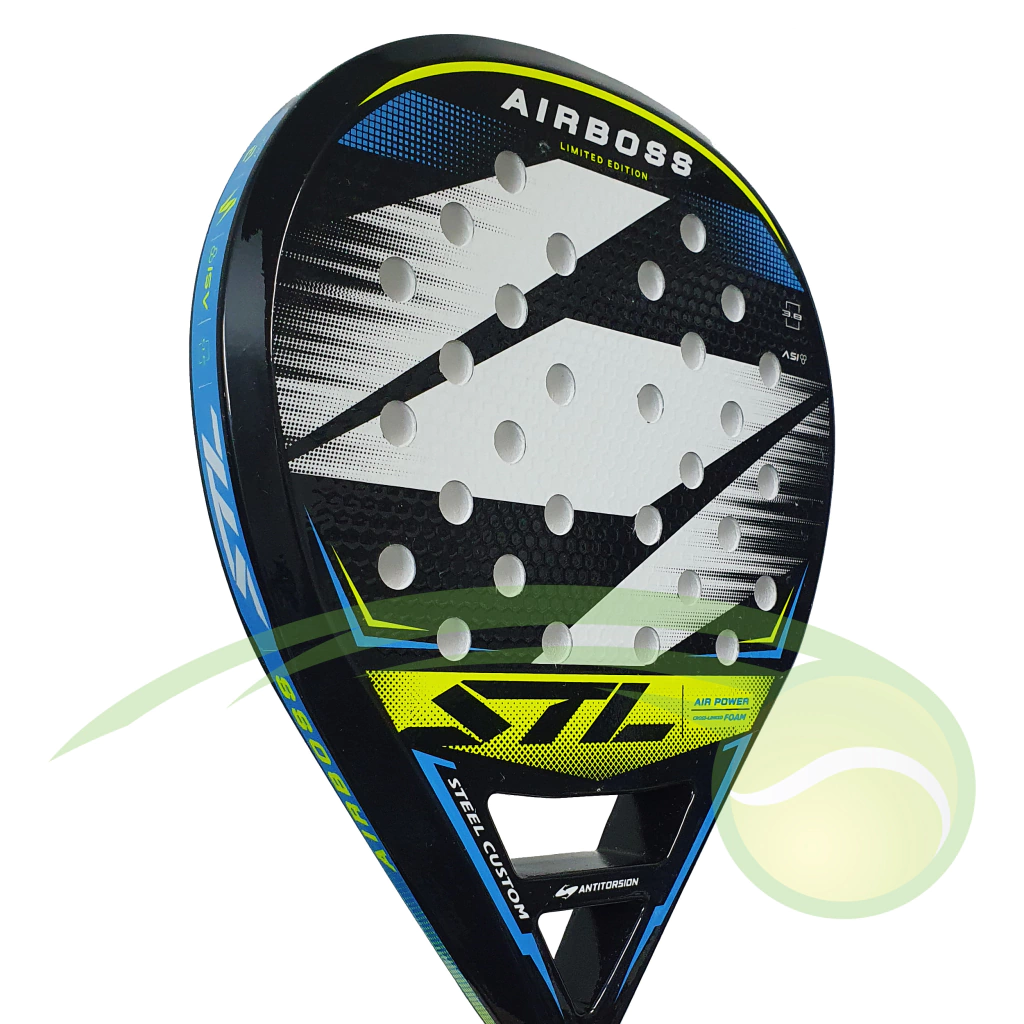 La paleta de pádel "Air Boss Special", de Steel Custom, se destaca por su potencia y agresividad gracias a su formato diamante, pero sin dejar de lado el control gracias a su núcleo de foam. La superficie es de fibra de vidrio. Tiene superficie rugosa pensada para que se adhiera mejor la bola y lograr así un mejor efecto. Cuenta con un puente antitorsión en el corazón que le da más potencia al golpe, además de absorver la mayor cantidad de vibraciones y cuidar así la salud del jugador. Es una pala pensada para jugadores de nivel avanzado.