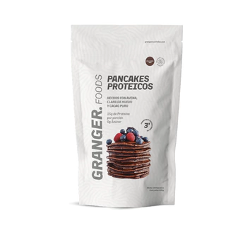 Premezcla para preparar pancakes proteícos agregandole agua, leche o bebidas vegetales, y con solo 3 min. de cocción, alcanzan para unos 18 pancakes aproximadamente.