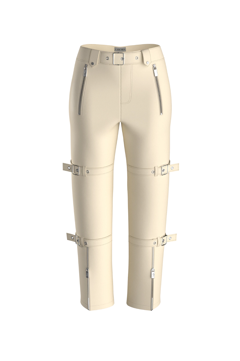 pantalon corte recto/skinny confeccionado en cuerina importada con velvet en color crema