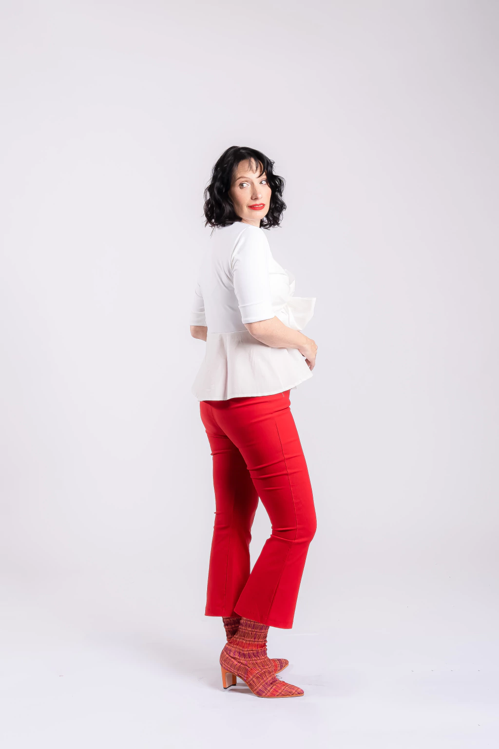 Comfort y calce: Tiene tiro alto y su pierna es crop flare al tobillo para dejar ver un poquito las botas o el calzado. La súper elasticidad de su textil lo hace adaptable para muchas formas corporales. No vas a encontrar sastrería más cómoda y ondera que esta, es una promesa 😊 Si ya tenés el otro exitazo que es el pantalón Tutti Frutti, la base de moldería es la misma con la modificación de la pierna.