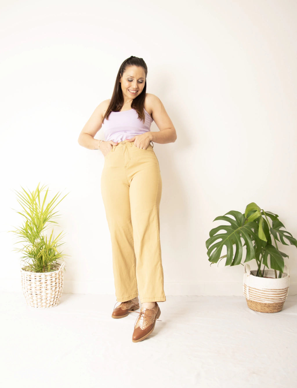 Pantalón de bengalina tipo Wide Leg. Con bolsillos en la parte delantera.Tabla de talles:Talle 1Contorno de cintura: 75cm (Elastiza hasta 94cm)Contorno de cintura: 96cm (Elastiza hasta 130cm)Largo de tiro: 31cmLargo total: 102cmTalle 2Contorno de cintura: 78cm (Elastiza hasta 98cm)Contorno de cintura: 100cm (Elastiza hasta 136cm)Largo de tiro: 32cmLargo total: 102cmTalle 3Contorno de cintura: 82cm (Elastiza hasta 112cm)Contorno de cintura: 106cm (Elastiza hasta 142cm)Largo de tiro: 33cmLargo total: 102cmTalle 4Contorno de cintura: 96cm (Elastiza hasta 120cm)Contorno de cintura: 112cm (Elastiza hasta 148cm)Largo de tiro: 33cmLargo total: 102cmPara tomar las medidas apropiadamente, te sugerimos:Tomar tus medidas con un centímetro. Si no tenés centímetro, podés elegir una prenda similar que ya tengas en tu guardarropa y apoyarla sobre una superficie como puede ser una mesa o cama y tomar las medidas con una regla siguiendo las instrucciones. Las medidas que les brindamos son lineales. Excepto cuando dice contorno. Si medís con regla, cuando dice contorno debés multiplicar la medición por dos.¡Y listo! ¡Ya podés comprar online!