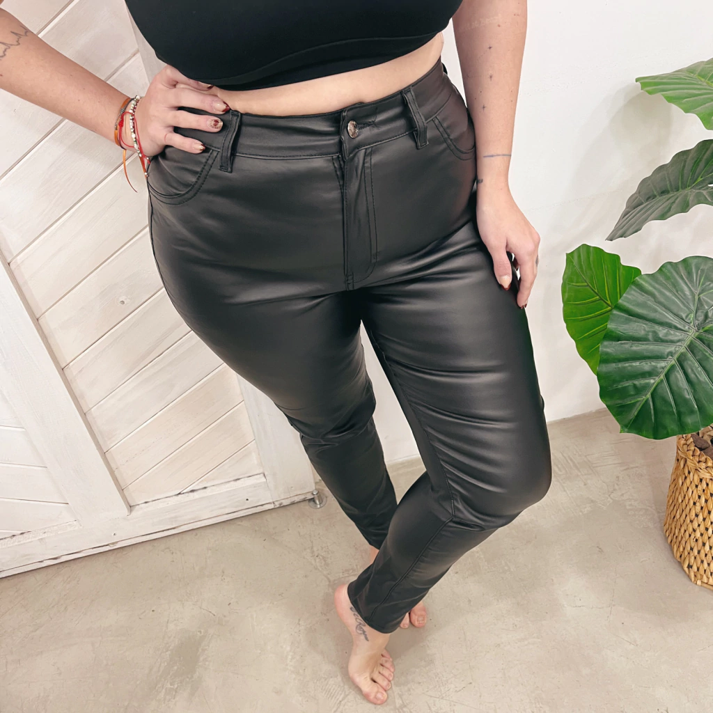 Pantalón estilo chupin de ecocuero engomado (PU). Es de tiro alto, trae cierre y botón, bolsillos de vista. Está disponible del 44 al 54. Tomá tus medidas de cintura y cadera para compararlas con la tabla de talles del producto y así saber cuál seleccionar. Hacelo aunque hayas comprado alguna prenda similar en nuestra tienda ya que puede haber variaciones según calce y moldería.
