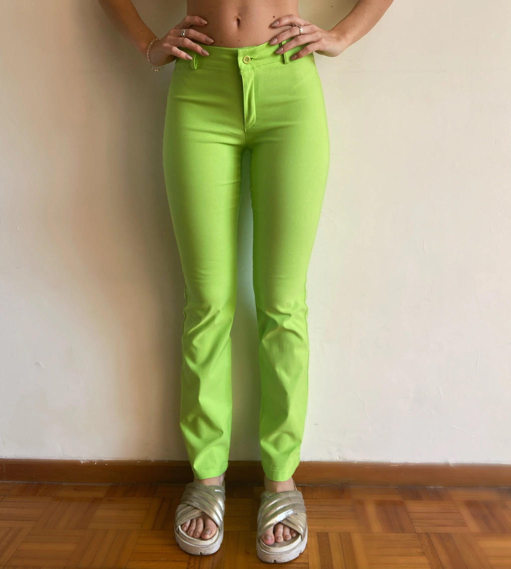 PANTALONES: cintura de punta a punta en la parte más alta, cadera baja y largo de pantalón.