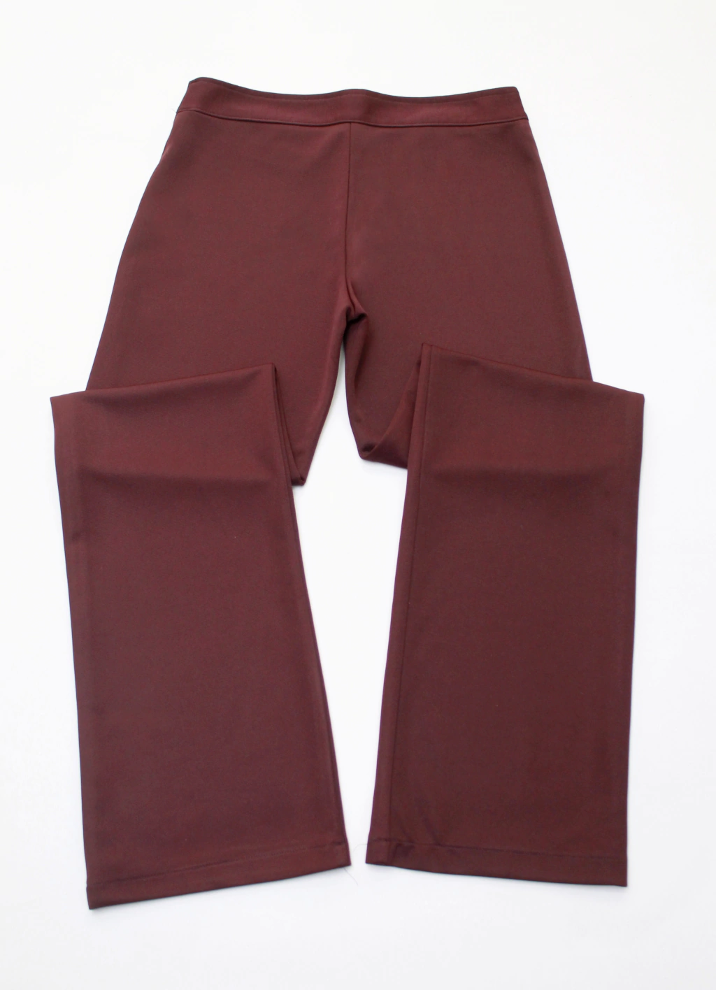 Pantalón tipo acetato, color uva, semirígido, recto, tiro medio, talle 38 aprox (en etiqueta dice talle 2), NUEVO, fabricado en los años 00s.Medidas:72 cm de contorno cintura (cede hasta 76 cm)96 cm de contorno cadera (cede hasta 112 cm)24 cm de tiro delantero82 cm de largo de pierna (desde entrepierna a botamanga)Importante!Los talles sonAPROXIMADOS, guiarse por las medidas para una mayor exactitud.Tener en cuenta que los talles de antes eran diferentes a los actuales: solían ser un poco más chicos de cintura.Ver info para tomar medidas más abajo..Por dudas y consultas escribinos, gracias!