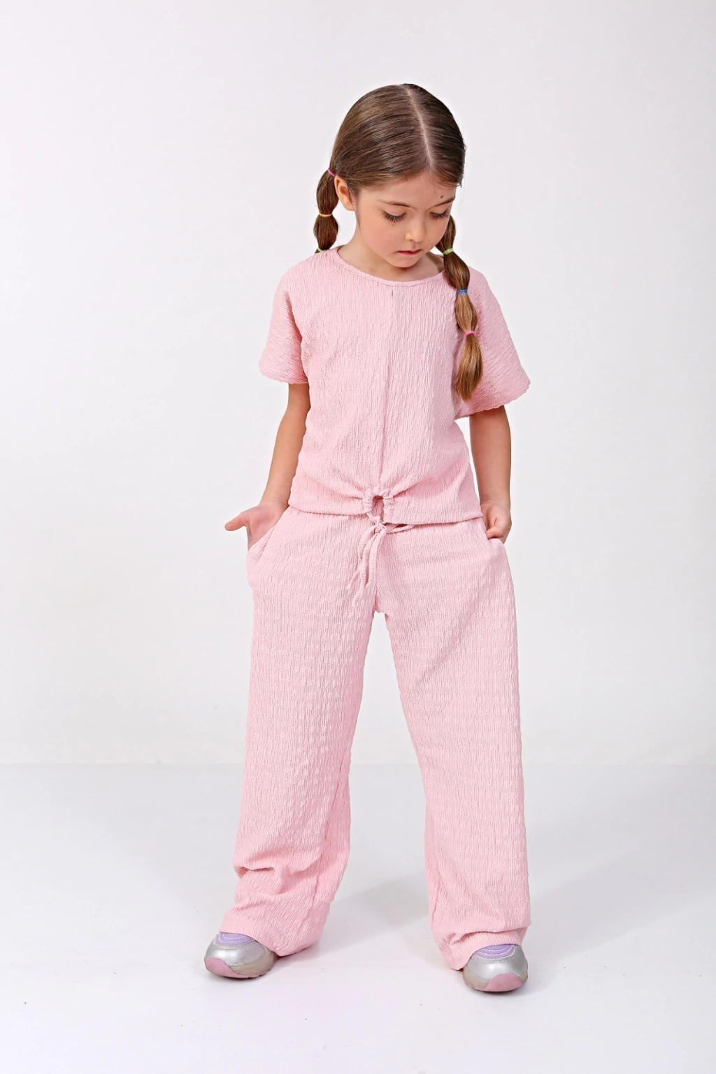 Pantalón de bambula, corte palazo, elastizado en cintura.