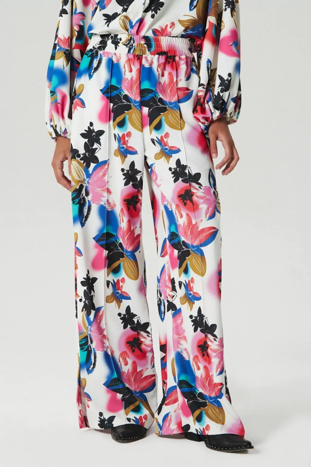 PANTALON TIRO ALTO DE CALCE HOLGADO CON CINTURA ELASTIZADA. EN CADA DELANTERO TIENE UN RECORTE TIPO SASTRERO Y LAS PIERNAS FINALIZAN CON TAJOS EN LOS LATERALES. PODES FORMAR UN TOTAL LOOK CON LA CAMISA IRIS. ESTA ESTAMAPA ES UN DESARROLLO EXCLUSIVO DE CLOETAS PARA EL INVIERNO 2024