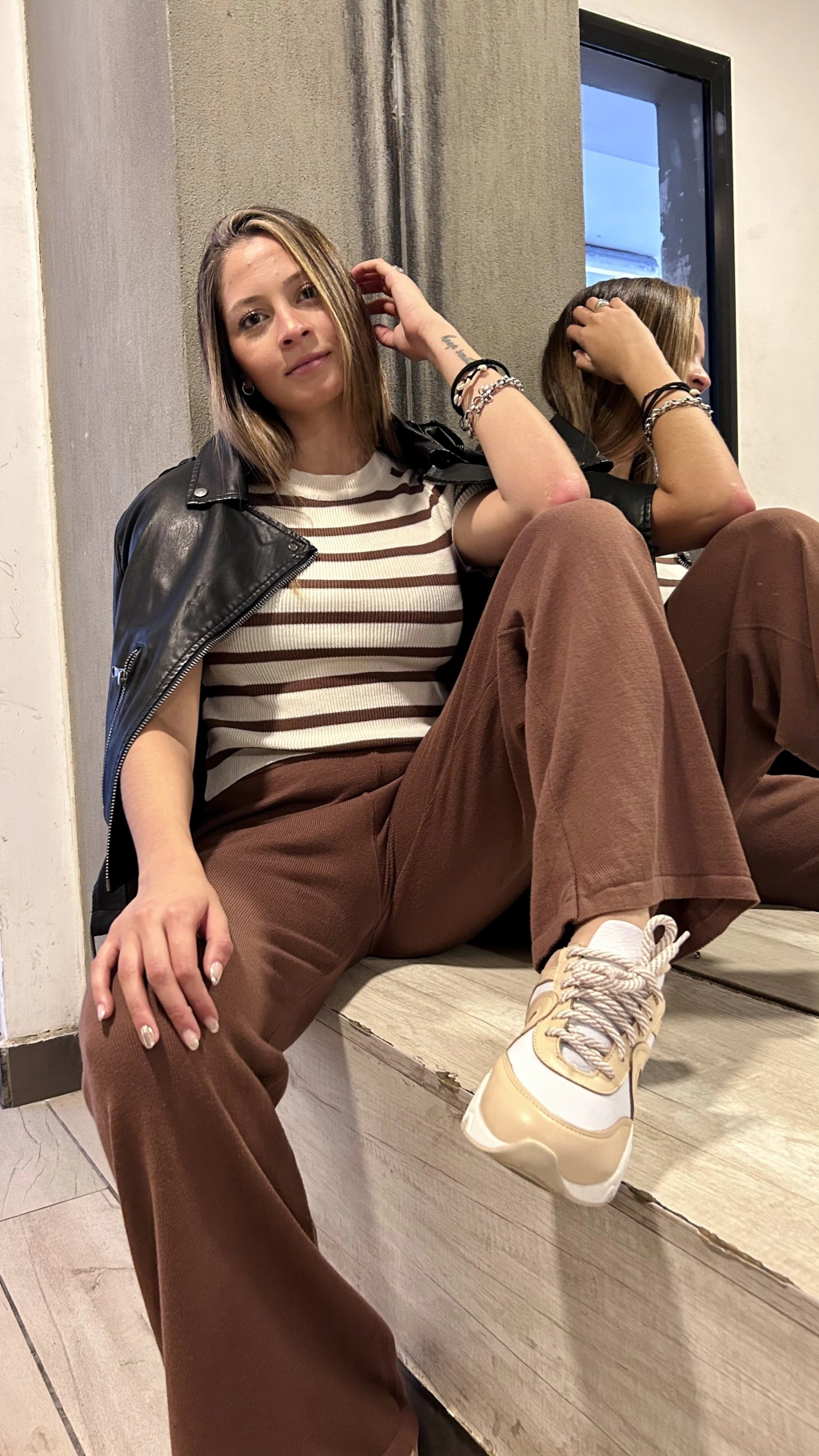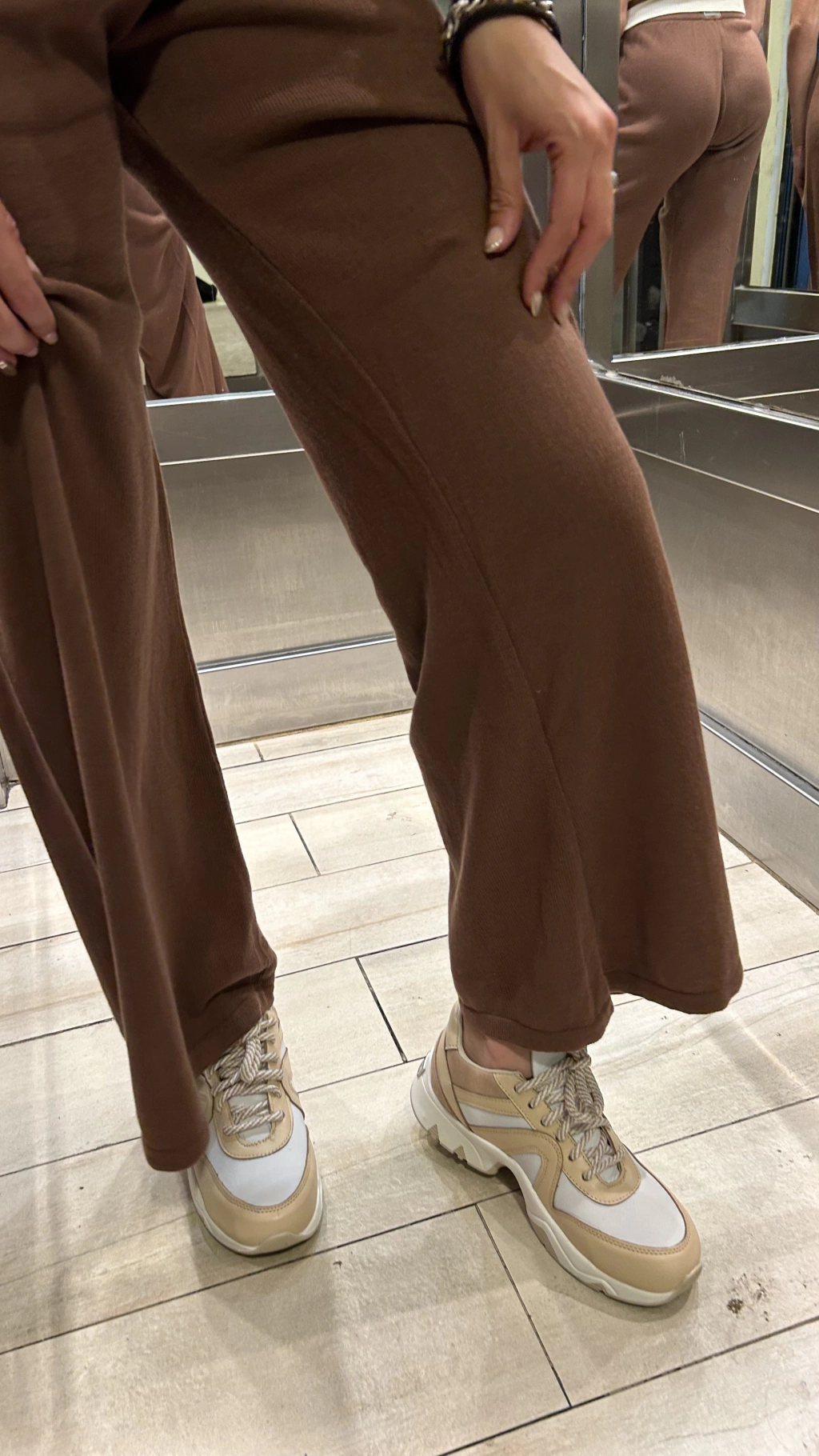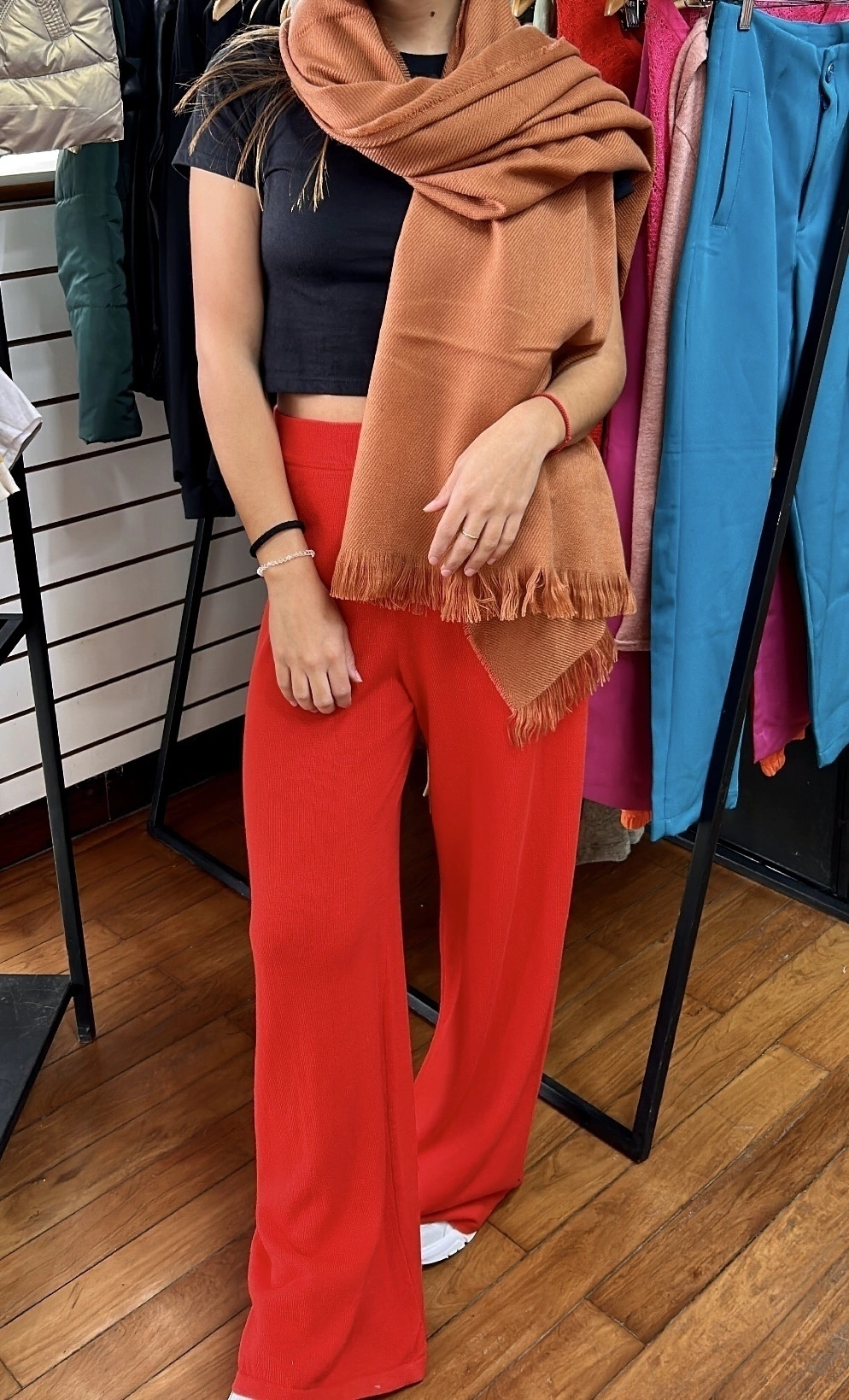 PANTALON DE HILOSUPER COMODOTIRO ALTOELASTICO ANCHO EN LA CINTURAPALAZODISPONIBLES EN MARRON Y ROJO