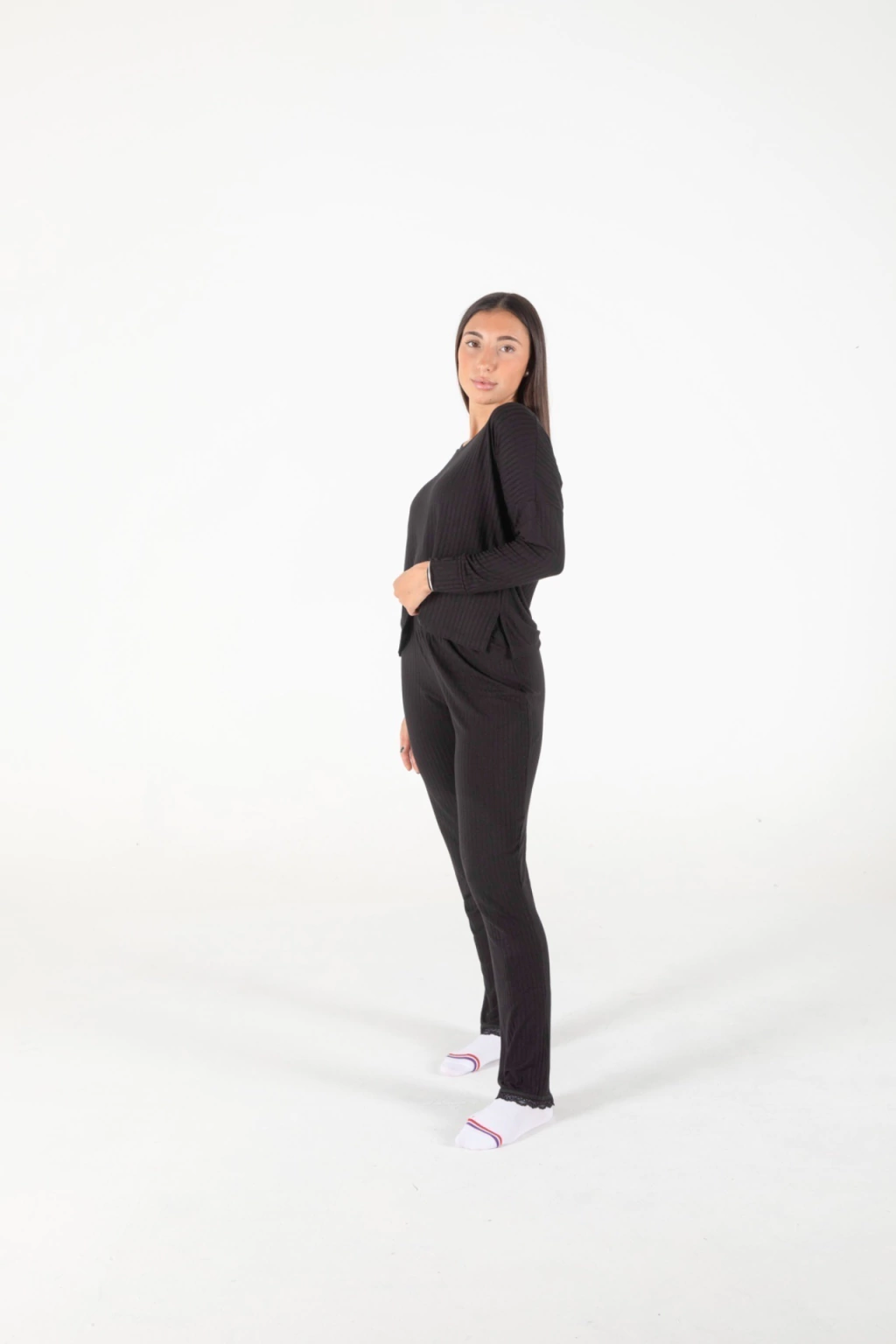 Pantalon largo con cintura elastizada y puntilla en terminacion.Tela viscosa algodon con spandex.Suave al tacto, tela liviana y con caida.Prenda versatil, la podes usar como quieras! No solo para dormir.Talles disponibles: S a XLBusca la remera para completar el conjunto.IMPORTANTE:Lavar a mano y secar a la sombra. Plancha minima sobre el revez de la tienda.