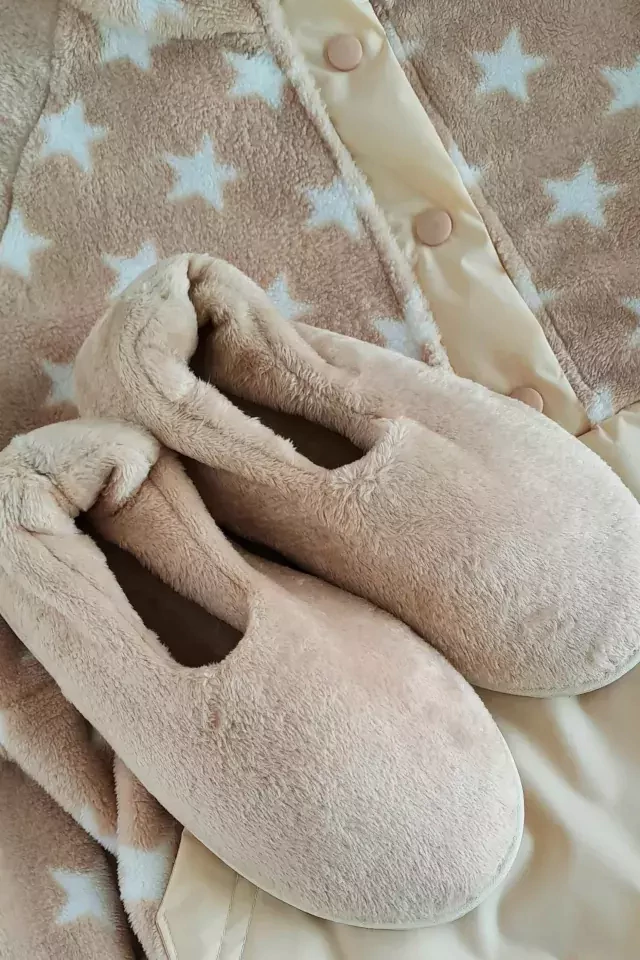 Pantufla tipo ballerina de piel. Base para apoyar pie acolchonada.