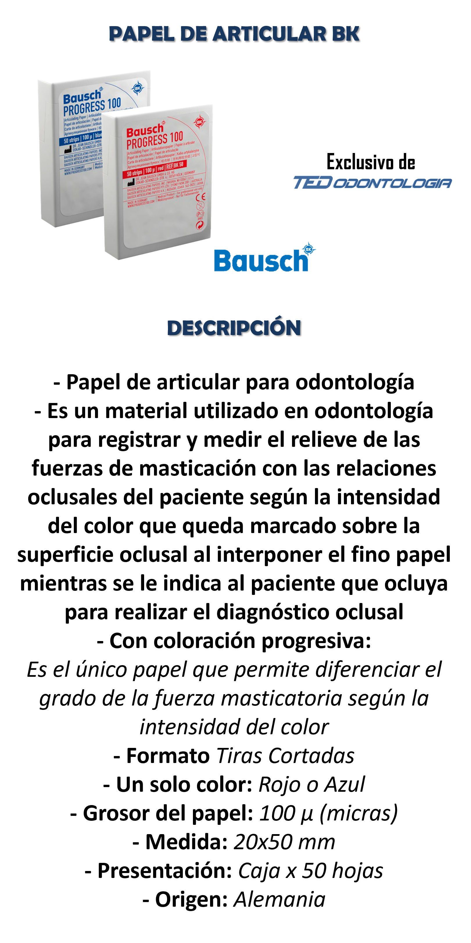 Papel de articular BK57 Azul c/dispenser (100 micras) x 50 hojas Bausch