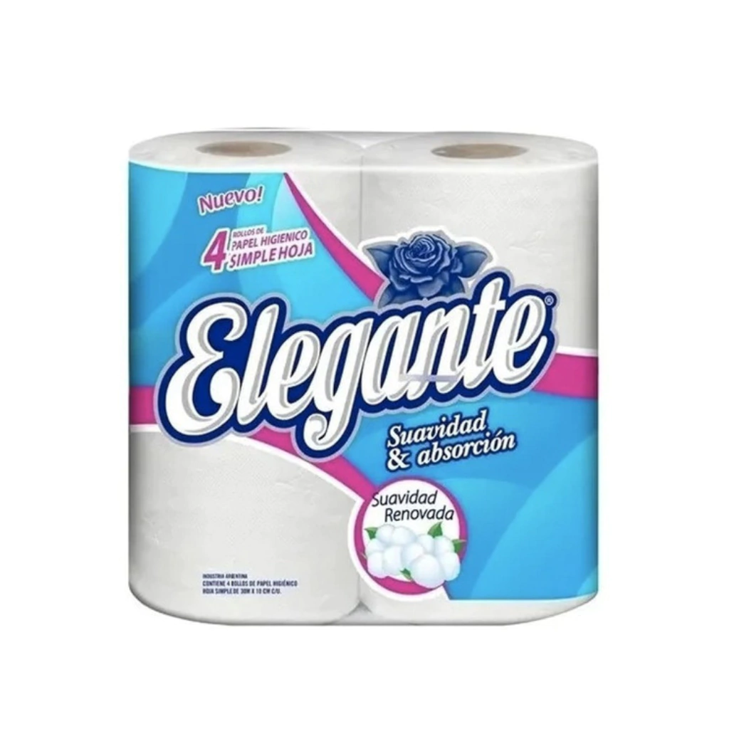 Papel Higiénico Elegante Blanco Hoja Simple 4x30mts.