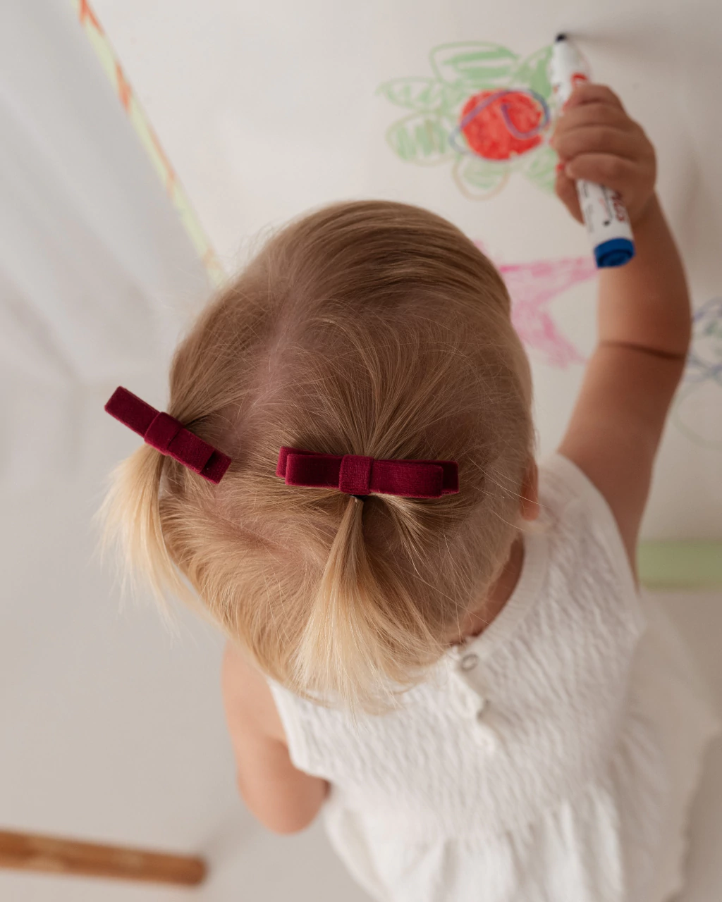 - Dato SARA: siempre recorda atar con gomita de silicona previamente, lo recomendamos desde que tienen poquito pelo hasta cuando ya son mas grandes, y arriba de la gomita colocamos el clip con el moño. Te aseguramos que estara todo el dia peinada!