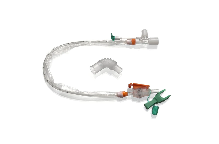 El Catéter de succión permite aspirar la acumulación de mucosidad de las vías respiratorias de los pacientes , sin la necesidad de desconectar al paciente del ventilador. El catéter está protegido dentro de un manguito.